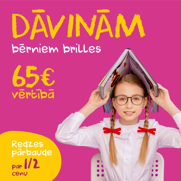 Dāvinām bērniem brilles 65€ vērtībā + redzes pārbaude bērniem par 1/2 cenu
